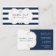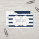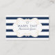 Navy Blue Stripe Pattern & Elegant Crest Business Card