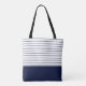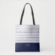 Navy Blue Stripe Pattern Monogram Tote Bag