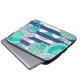 This unique laptop case features a beautiful teal green, gold, pink and white seashell pattern laid over and under a navy blue stripe background. Your name or other text is in white script at the bottom right.