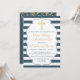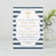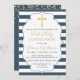 Navy Blue Striped Gold Cross First Holy Communion Invitation
