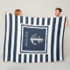 Navy Blue Striped Nautical Anchor Boat Name Fleece Blanket