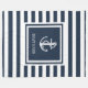 A nautical design featuring an anchor, stylish navy blue and white stripes and personalised with your boat name. Designed by Thisisnotme©