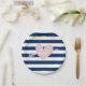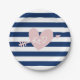 Navy Blue Stripes Heart & Arrow Nautical Wedding Paper Plate
