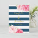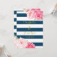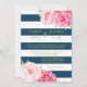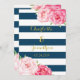 Navy Blue Stripes Pink Flowers Wedding Invitations