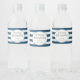 Navy Blue Stripes Silver Custom Merry Christmas Water Bottle Label