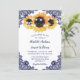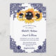Navy Blue Sunflower Floral Lace Rustic Wedding Invitation