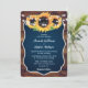 Navy Blue Sunflower Rustic Wood Wedding Invitation