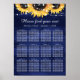 Complement your navy blue rustic country, backyard, garden, or barn wedding party with this sunflower seating chart for 12 tables. Matching items available.