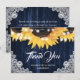 Navy Blue Sunflower Wood String Lights Wedding Thank You Card