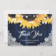 Thank your guest for sharing in your special day with these rustic navy blue and sunflower wedding thank you cards. Matching items available.
