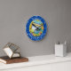 If you have a beach hut, this fabulous uplifting design is perfect for adding that personal touch. A bright and summery design wall clock, especially for your holiday home. Add your family names, or customize and give as a gift. Uplifting navy blue nautical surf and sunshine decor.
