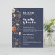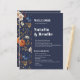 A lovely handpainted watercolor border with a modern font and dark moody theme. A dark and moody French Country design. Easily edit the template to suit your wedding event. Navy Blue Terracotta Bohemian Wedding Program.