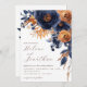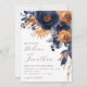 Navy Blue Terracotta Watercolor Elegant Wedding Invitation