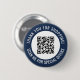 Promotional small business QR code button with a navy blue border and your own QR code and custom text in a curve around your QR code. Thank you for shopping promo button personalised with your QR code and custom text. A custom promotional button with which you can advertize your special offers.