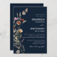 Navy Blue Tiny Wildflower Wedding Ceremony Invitation