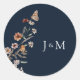 Navy Blue Tiny Wildflower Wedding Classic Round Sticker
