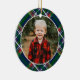 Navy Blue Traditional Christmas Plaid Photo Ceramic Ornament features your photo on a beautiful red and green Christmas plaid.
