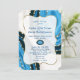 Navy Blue Watercolor Agate Pearls Wedding Invitation