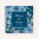 Pretty watercolor floral borders on dark blue wedding guest notebook with elegant font.