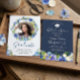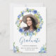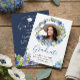 Navy Blue Watercolor Floral Wreath Graduate Photo Invitation
