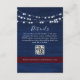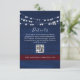 Elegant navy blue wedding enclosure card with white string lights and space for custom details and a QR code. Easily direct guests to your wedding website, RSVP page, or important info like reception directions and accommodations. Burgundy stripe adds a rustic, romantic touch. Matches navy and burgundy wedding suites.