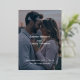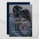 This invitation embodies timeless elegance with a calligraphy script with some romantic flair. The dark navy blue background sets a striking stage for crisp white text, creating a stunning contrast that exudes luxury and refinement. Perfect for couples who appreciate classic elegance. This invitation is ideal for fall or winter weddings that embrace the beauty of simplicity and the power of monochrome. Add your photo to the front of the invitation (set to a opacity to make it slightly darker) and add your wedding details to the back. A modern way to have both invite and details all in one card.