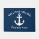 Navy Blue Welcome Aboard Boat Name Nautical Anchor Doormat