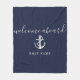 Navy Blue Welcome Aboard Nautical Anchor Boat Name Fleece Blanket