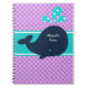 It's easy to personalise this colourful polka dots and navy blue whale notebook with a name before ordering! Features a purple polka dotted background with a navy blue whale with aqua blue water spout and an area you can easily customise with a name!