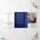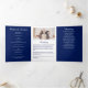This elegant trifold funeral program provides a beautifully structured and comprehensive tribute to honour and remember a loved one. The sophisticated design in blue and white creates a serene and respectful aesthetic. The unique folded booklet format allows for a logical flow of information, guiding attendees through the entire service. It offers generous space for including a detailed order of service, personalised acknowledgements, touching poems, hymns, and heartfelt tributes. A dedicated photo panel on the front provides the perfect place to showcase a cherished image of the person being remembered. This program serves not only as a functional guide but also as a comforting and meaningful keepsake for family and friends to hold on to, beautifully preserving the memory of a life well-lived.