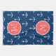 Navy Blue White Anchors Pattern, Coral Monogram Tea Towel