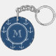 Navy Blue White Anchors Pattern, Your Monogram Key Ring