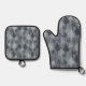 Navy Blue White and Faux Glitter Trees Oven Mitt & Pot Holder Set