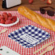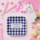Get ready for a family picnic with paper plates featuring a navy blue and white buffalo check plaid with up to 3 lines of text in a white rectangle in the centre. Perfect for an annual family reunion or a new tradition. Personalise it with your name and text in the sidebar.