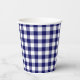 Get ready for a picnic or party with paper cups featuring a classic navy blue and white buffalo check pattern.