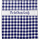 Add a classic accent to your bathroom with a custom shower curtain featuring navy blue, white, and light blue squares in a bold buffalo plaid with your family name in a rustic script font within a white band near the top. Add your own surname or text in the sidebar.