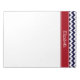 Navy Blue and White Chevron ZigZag Pattern, Cranberry Red Ribbon Name Monogram Label