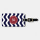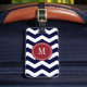 Navy Blue & White Chevron Monogram Luggage Tag