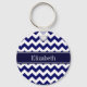 Navy Blue White Chevron Navy Name Monogram Key Ring