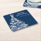 Navy Blue White Christmas Tree Party Square Paper Coaster