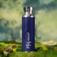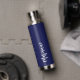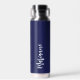Navy blue white custom name script water bottle