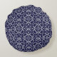 Stylish and cute two-toned Navy Blue & White Damask Round Pillow.