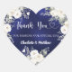 A navy blue, uneven coloured background. Decorated with white florals, roses and a heart. Personalise and add your names. With the text: Thank you for sharing our special day.