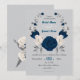 romantic navy blue and white flowers and grey leaves floral wreath wedding invitation
