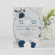 gorgeous navy blue and white flowers and grey leaves geometric wedding invitation
