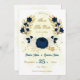 Romantic navy blue & white flowers with gold leaves botanical save the date invitation