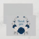 gorgeous navy blue & white flowers with grey silver leaves botanical wreath thank you card