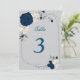 navy blue & white flowers table number
