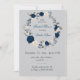 elegant navy blue and white flowers botanical wreath on a grey background bridal shower invitation