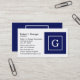 Navy Blue White Framed Initial Monogram Business Card